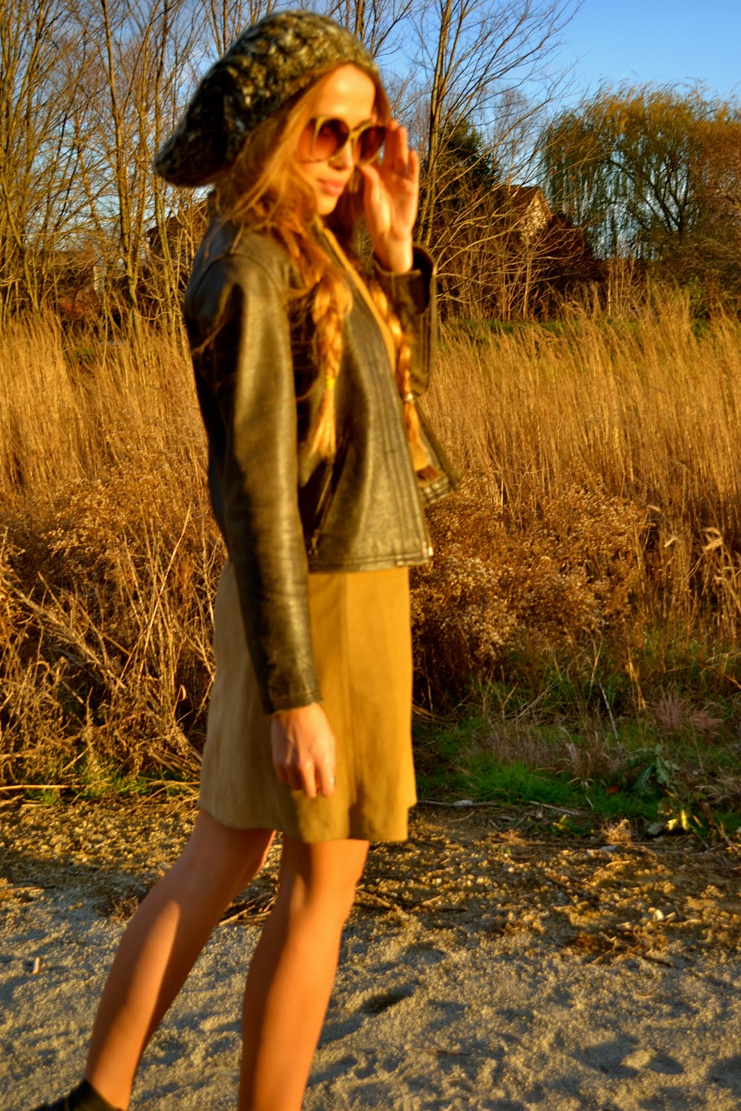Outfit: Leather Dress Banana Republic, Leather Jacket American Eagle, Coat Winston Leather, Boots Urban Outfitters, Sunglasses Urban Outfitters